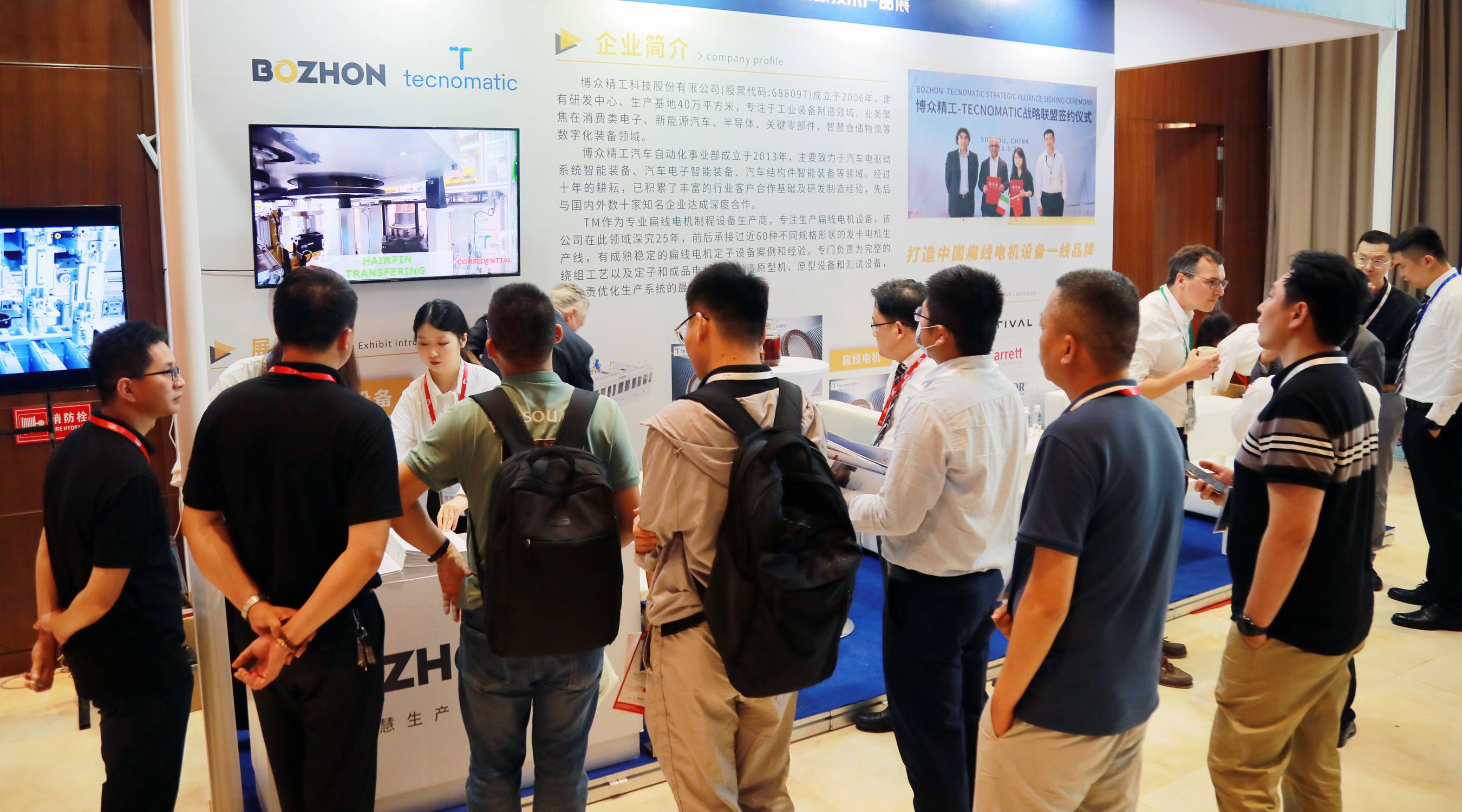 同時(shí),博眾精工與Tecnomatic,還在會(huì)場設(shè)置了聯(lián)合展臺(tái),向參會(huì)嘉賓展示扁線電機(jī)定子線、新能源電機(jī)定子總成裝配線、新能源扁線電機(jī)轉(zhuǎn)子生產(chǎn)線等主打產(chǎn)品,引起與會(huì)嘉賓的廣泛關(guān)注,紛紛上前咨詢,并現(xiàn)場達(dá)成多項(xiàng)合作意向。.jpg)