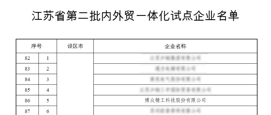 近日,江蘇省商務(wù)廳正式公布了“第二批內(nèi)外貿(mào)一體化試點企業(yè)名單”,博眾精工憑借在智能裝備制造領(lǐng)域的深厚積累、創(chuàng)新能力和國際市場競爭力成功入選。本次入選,不僅是對公司長期以來堅持智能裝備制造領(lǐng)域的肯定,更是對公司在推動內(nèi)外貿(mào)融合發(fā)展、促進(jìn)國內(nèi)外市場循環(huán)暢通方面的認(rèn)可。