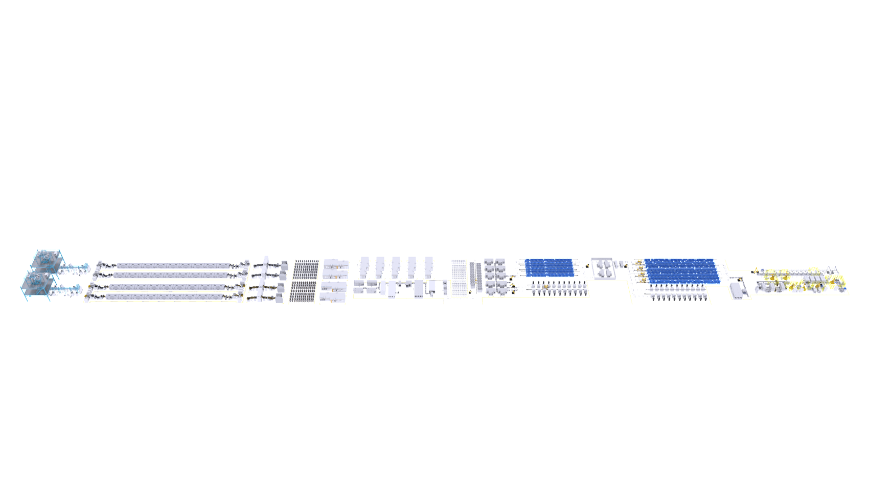 后段生產(chǎn)線:涵蓋化成、分容、OCV、DCIR、分選、立庫物流等工序,主要進行電池的激活和性能測試。