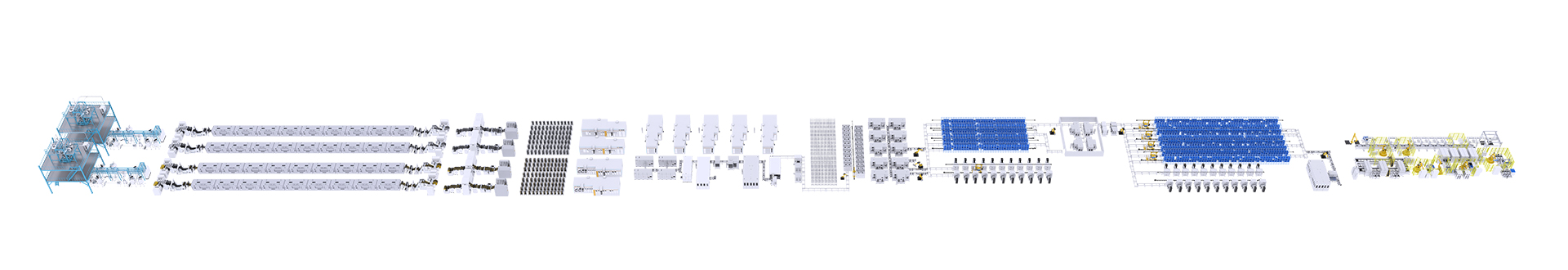 后段生產(chǎn)線:涵蓋化成、分容、OCV、DCIR、分選、立庫物流等工序,對電池進(jìn)行激活和性能測試,保證出廠電池的合格率和穩(wěn)定性。